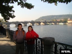 Аскар жана Элвира Прагадагы белгилүү Карл көпүрөсүнүн жанында