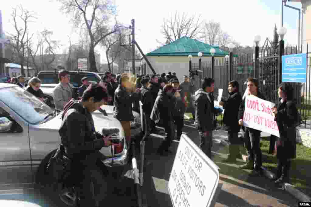 Европадагы Коопсуздук жана Кызматташтык уюмунун Бишкектеги борборунун башчысынын орун басары Лилан Дарий пикетте тургандарга чыгып, ЕККУ "Азаттыктын" берүүлөрү кабылган тоскоолдуктар жөнүндө маселе каралып жатканын билдирди.