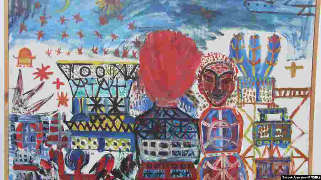 Көргөзмөгө автордун ар кайсы мезгилде жараткан элүүгө чукул эмгеги коюлган. Искусство адистери акындын тарткан сүрөттөрү башка кыл калем чеберлеринин чыгармаларына караганда өзгөчө деп баа беришет. Акын ар чыгармасы космос менен байланышта экенин айтып келген. Сүрөттөрдү "Азаттыктын" кабарчысы, маркум Зайырбек Ажыматов тарткан.