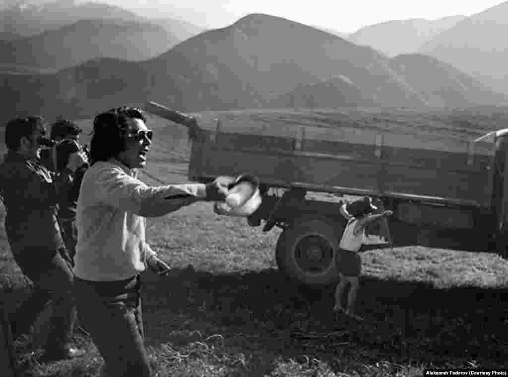 Режиссер Болот Шамшиев өз үйүндө кино тартып жаткан учуру. 1-декабрь, 1978-жыл.