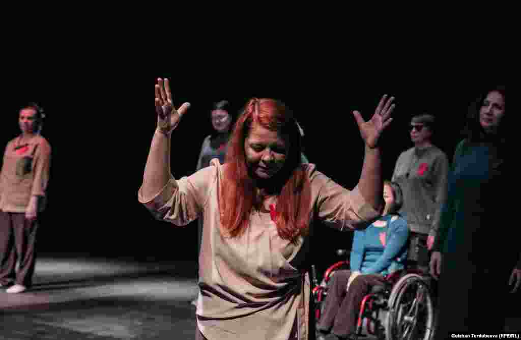 Спектаклде көзү азиз, кулагы начар уккан жана башка майып кыз-келиндер роль жаратышты. Алардын бири дагы мурда-кийин сахнага чыгып көргөн эмес. Ошентсе да алар койгон спектакль көрүүчүлөрдүн купулуна толгонун байкоого болот.