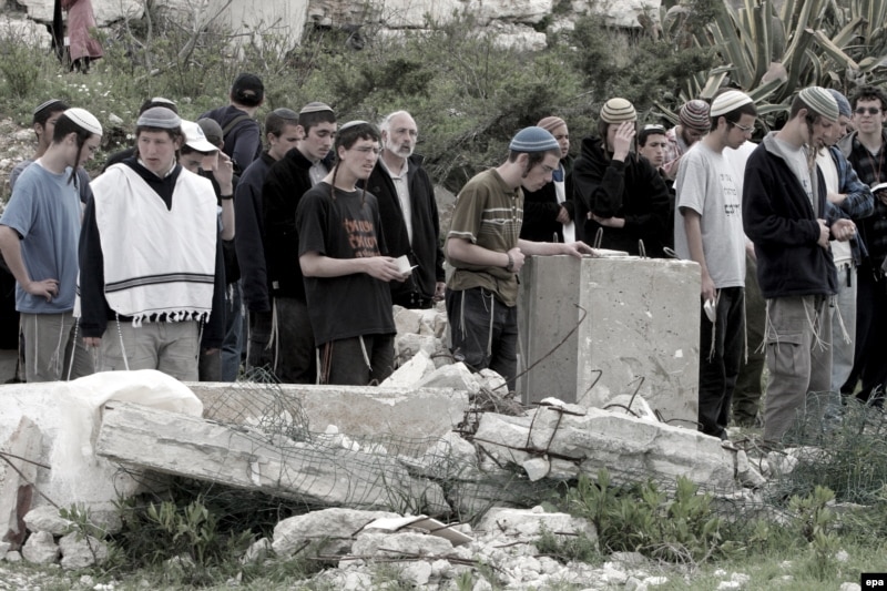 Израилдик келгиндер Батыш Иордандын түндүгүндөгү жөөттөрдүн мурдакы конушу Хомешке келип, зыярат кылышууда. 26-март 2007-ж.