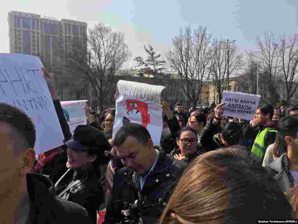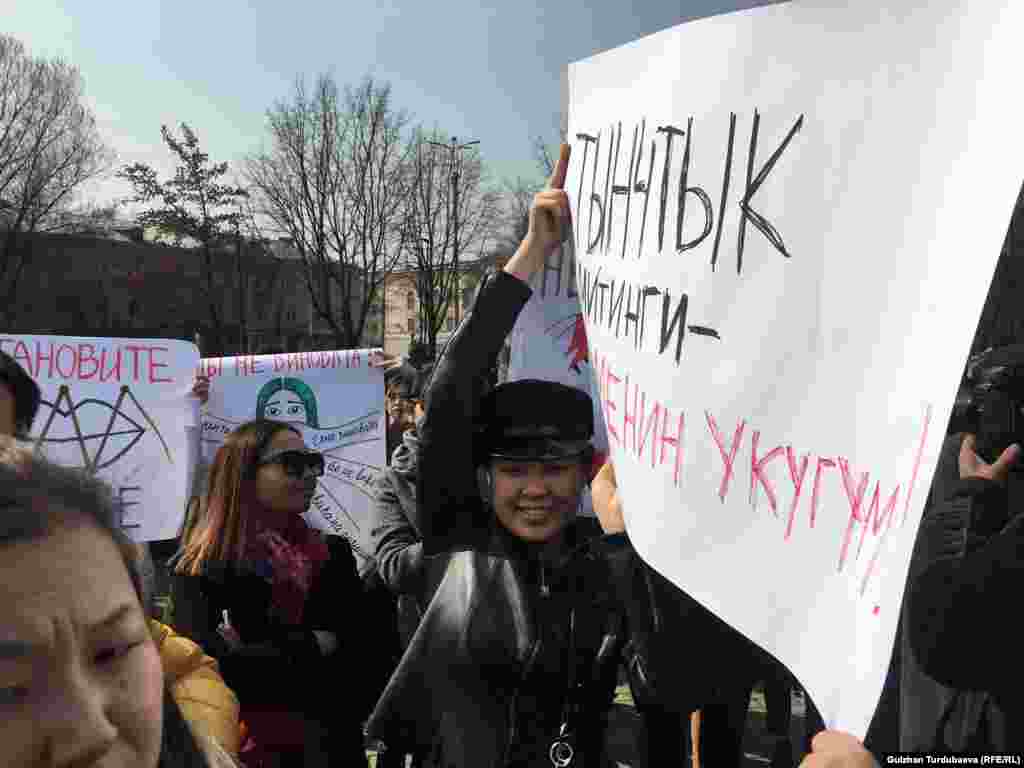 8-марттагы аялдардын укугун коргоо митингиндеги окуядан кийин уюштурулган жарандык акциянын катышуучулары өз талаптарын айтышты. Акция ушу тапта Бишкекте революциянын каармандарынын эстелигинин жанында өтүп жатат.