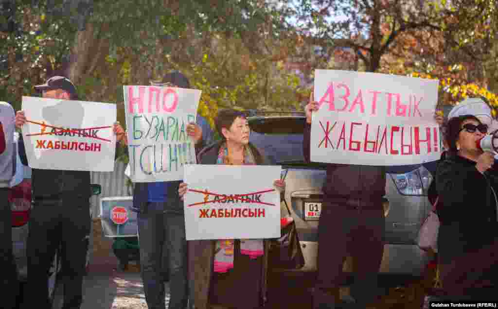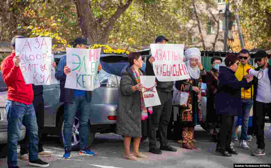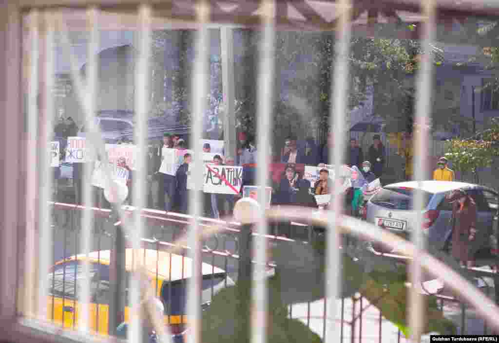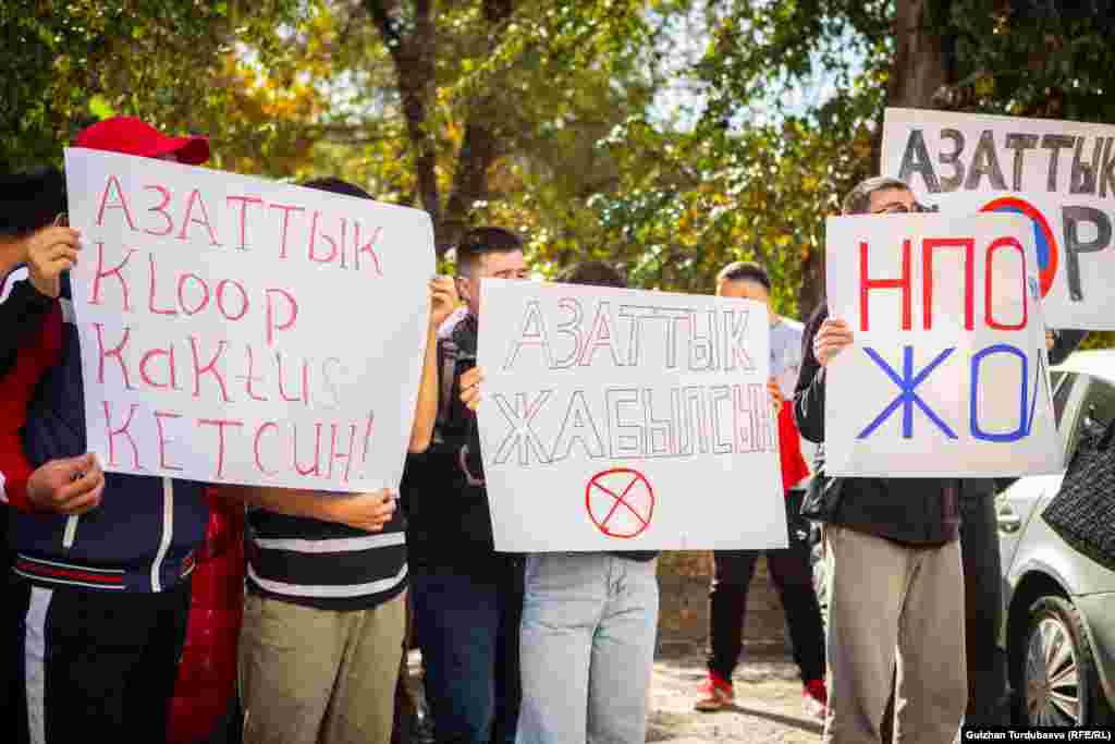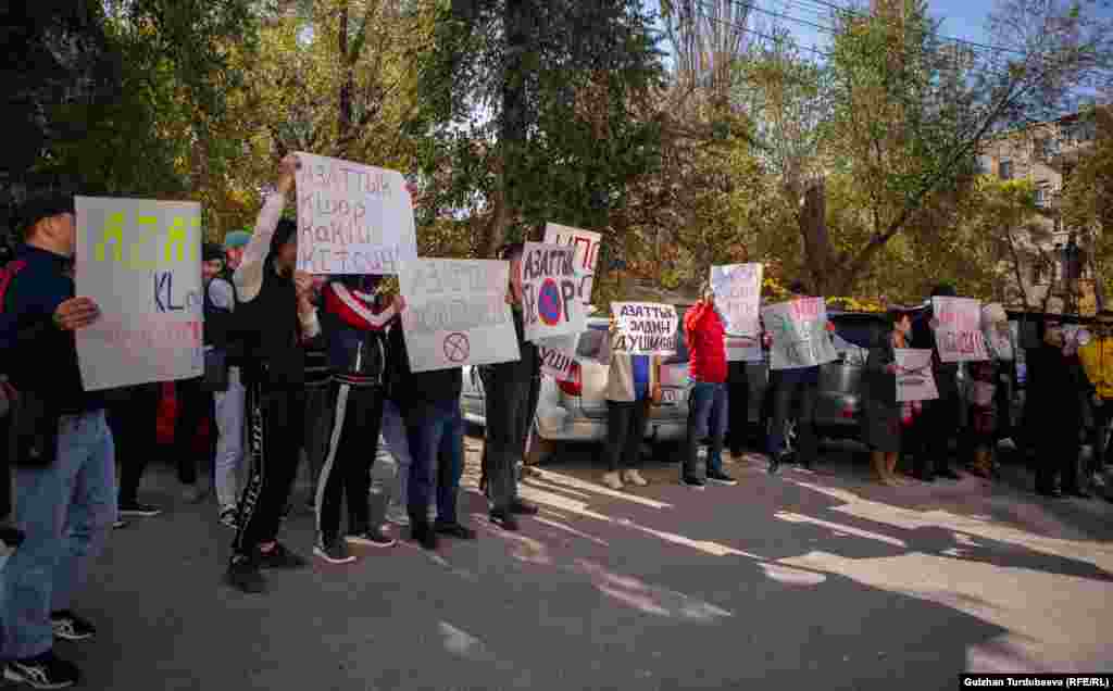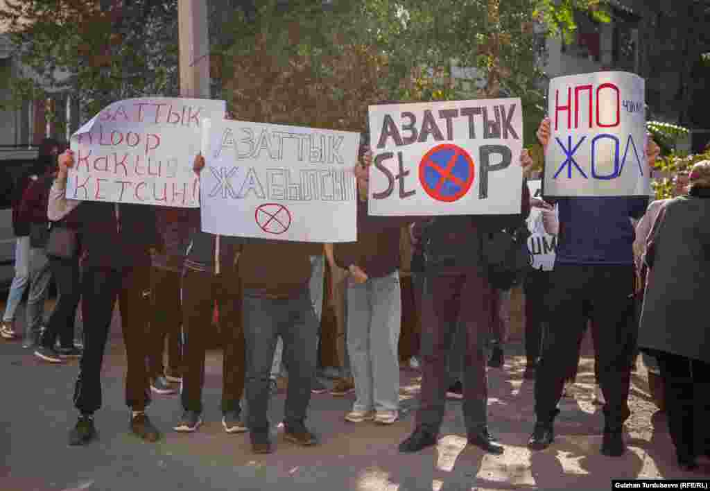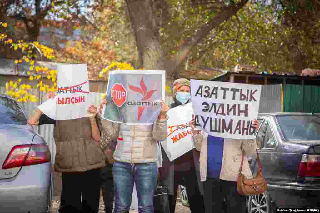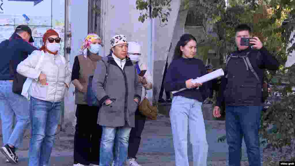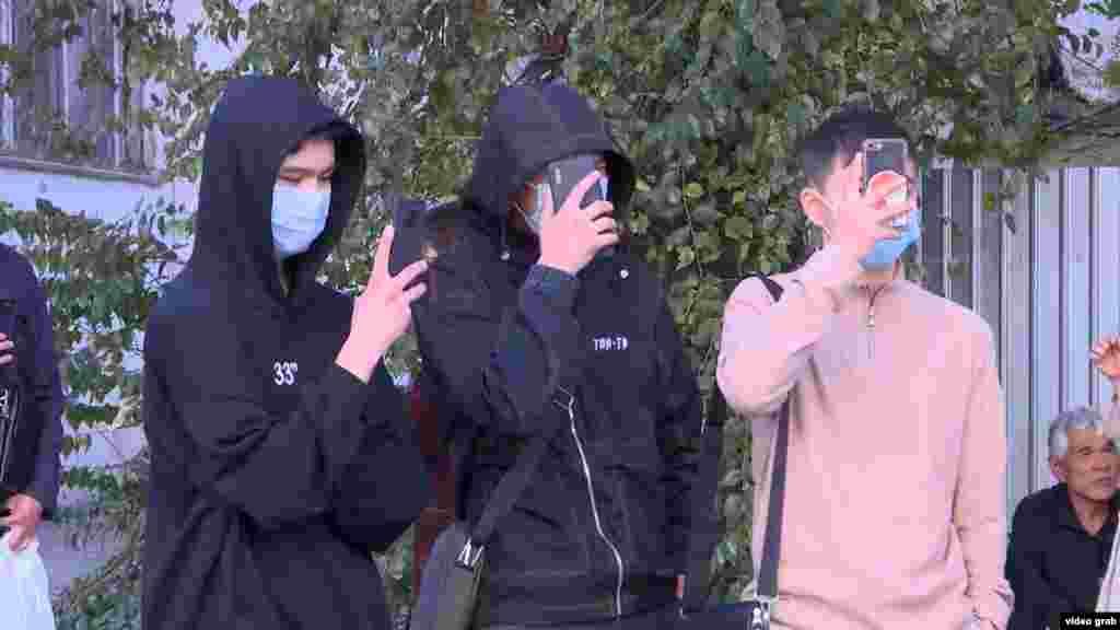 Журналисттер акциянын катышуучуларын видеого, сүрөткө тарталы десе баары бетин жаап, эмне талап менен турганы тууралуу суроолорго жооп берүүдөн баш тартышты.