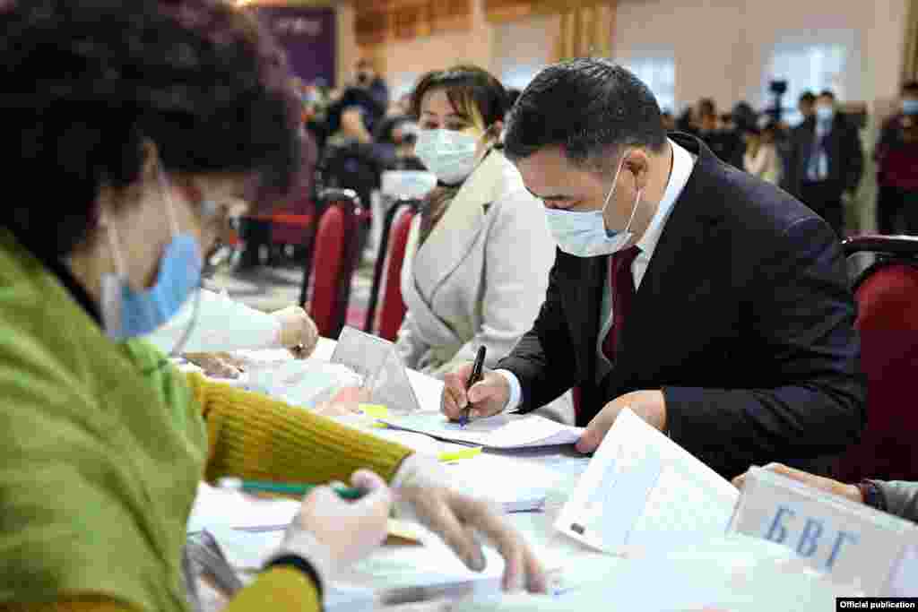 Бүгүн, 28-ноябрда саат эртең мененки сегизде Кыргызстандагы бардык шайлоо тилкелери ачылды. Добуш берүү кечки саат 20:00гө чейин уланат. Андан сырткары чет мамлекеттерде дагы шайлоо тилкелери ачылган.
