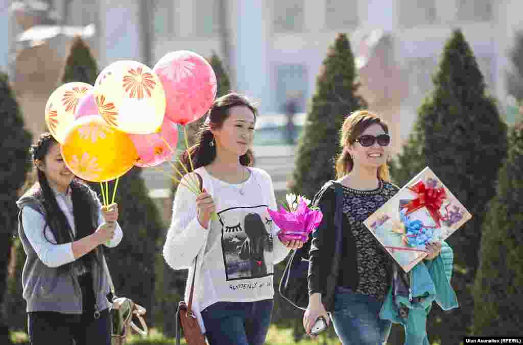 Кыргызстанда 8-Март Аялдардын эл аралык күнү белгиленүүдө. "Азаттык" жаз менен чогуу келген майрамда бардык аялзатына куттук айтып, сүрөт блог сунуштайт. Cүрөттөр 8-мартта Бишкекте тартылган.