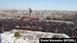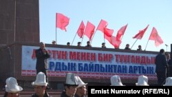 Митингде 4-мартта өтө турган Ош шаардык кеңешине шайлоодо Мелис Мырзакматовго тиешелүү делген “Улуттар биримдиги” партиясын колдоого чакырган ураандар да айтылды.
