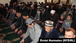 Бирде эңкейсе, бирде колдорун кулагына ала коюп, намазга жыгылгандар имамдын кыймыл-аракетин кайталап жатышты. Бири калпагын башына кондуруп, башкасы допусун баса кийип намазга жыгылып жаткандардын көптүгүнөн мечиттин ичи жыкжыйма.
