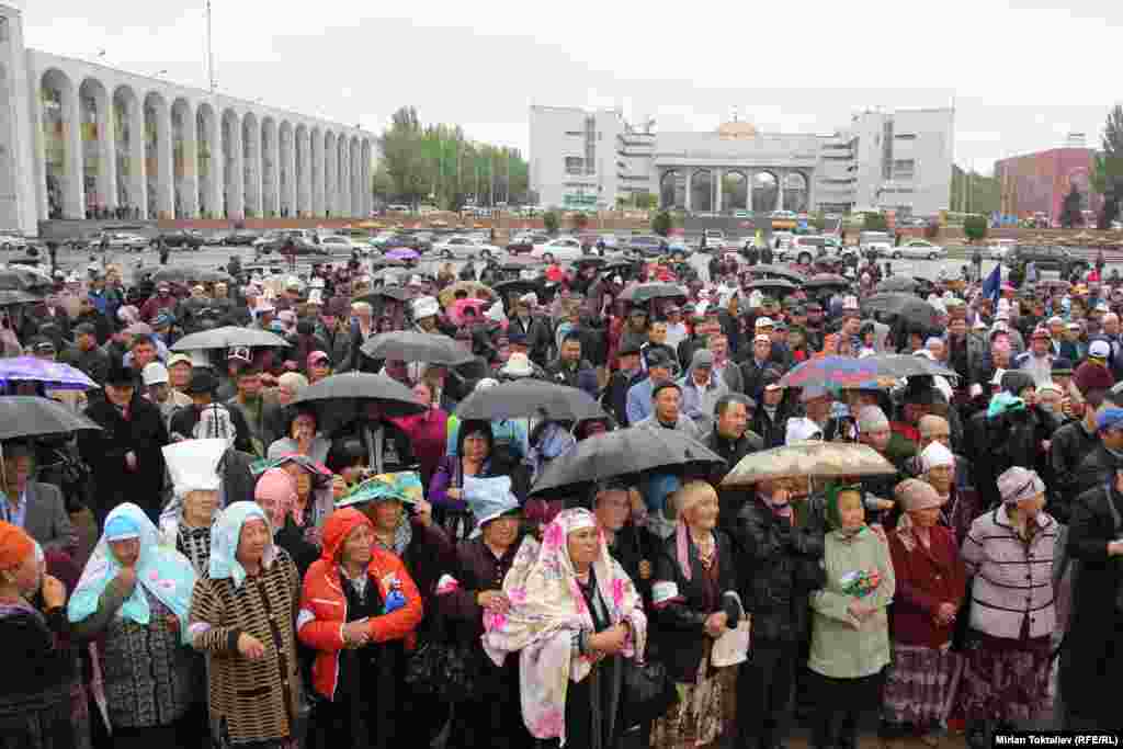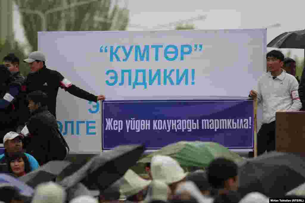 Бишкекте 24-апрелде "Эл үнү" оппозициялык кыймылы Кумтөр алтын кенин улутташтырууну талап кылган митинг уюштурду. (Мирлан Токталиевдин сүрөт баяны.)