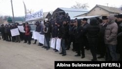 8-февралда Талас шаарында Кара-Буура районунун Көк-Сай айылынын тургундары сотторго ишенбөөчүлүк билдирип, облустук соттун алдына нааразылык акциясына чыкты.