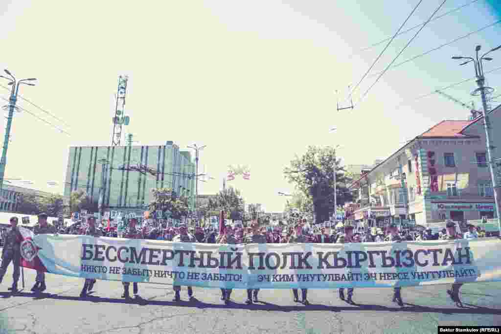 Бишкекте салтка айланып бараткан “Өлбөс полк” акциясы өттү. Сүрөттөрдү Бектур Стамкулов тартты.
