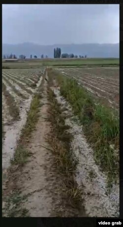 Социалдык түйүндөрдө тараган видеолордон талаага эгилген төө буурчак жалбырактары күбүлүп калганын жана айылдагы айрым турак жайларды суу каптаганын көрүүгө болот.