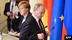 Меркел февралда жарашуу келишимине жетишилгени менен Украинада куралдуу кармаштар уланып жатканын, ок атышпоо шарты аткарылбаганын белгиледи. Орусия президенти менен Москвадагы жолугушуудан кийинки биргелешкен пресс-конференцияда канцлер Орусия менен Батыштын “пикир келишпестиктерине” карабай Украинадагы кырдаалды жөнгө салуу үчүн “дипломатиялык аракеттерди” күч алдырууга үндөдү.
