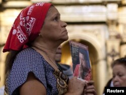 Каракастын тургуну Уго Чавестин сүрөтүн кармап турат. 29-июнь, 2011-жыл