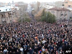 Жекшембиде өкмөткө каршы ири нааразылык жыйын өткөргөн армян оппозициялык топтору жана анын колдоочулары мурдагы президент Тер Петросяндын ысымын атап, “Левон” деп ураан чакырып жатышты.