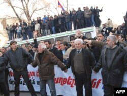 Армяндар былтыркы полиция менен кандуу кагылышуунун бир жылдыгын белгилешти. 2009-жылдын 1-марты. Ереван.