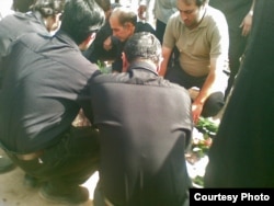 Шаршембиде анын таажиясына келгендер колдоруна гүл көтөрүп, Алланын атын чакырып жатышты.